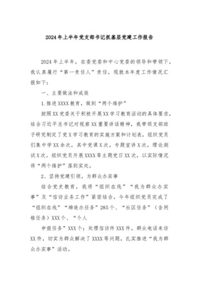 / 【七哥公文】2024年:2024年上半年党支部书记抓基层党建工作报告+更多免费公文+VX:QiGeGongWen2024