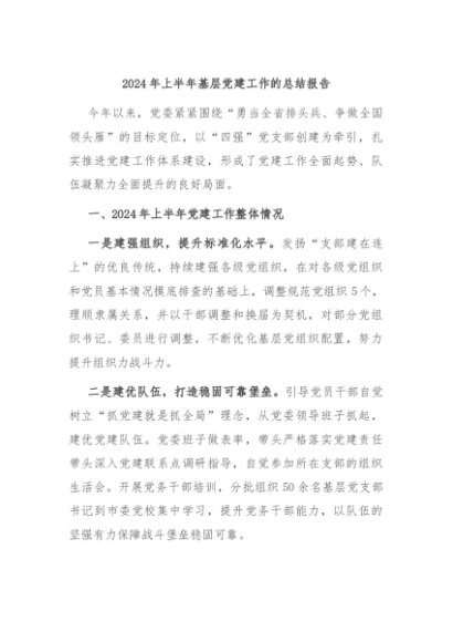 / 【七哥公文】2024年:2024年上半年基层党建工作的总结报告+更多免费公文+VX:QiGeGongWen2024