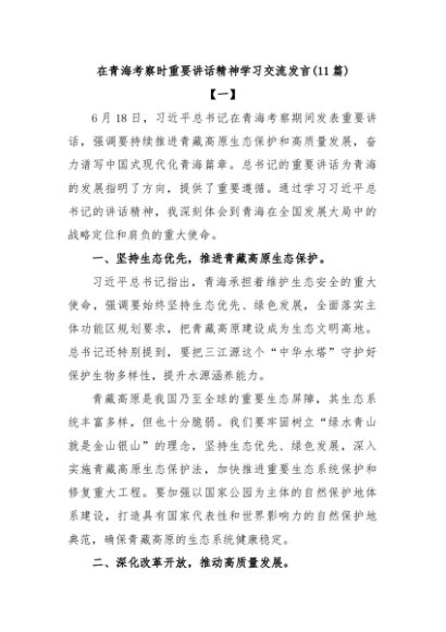 / 【七哥公文】2024年:(11篇)在青海考察时重要讲话精神学习交流发言+更多免费公文+VX:QiGeGongWen2024