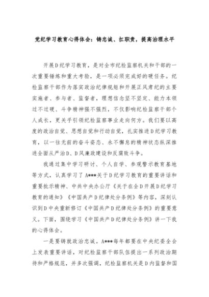 【七哥公文】2024年:党纪学习教育心得体会:铸忠诚、扛职责,提高治理水平+更多免费公文+VX:QiGeGongWen2024