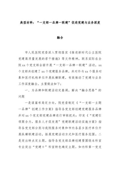 【七哥公文】2024年:典型材料:“一支部一品牌一联建”促进党建与业务深度融合+更多免费公文+VX:QiGeGongWen2024