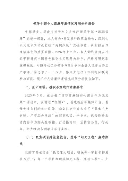 / 【七哥公文】2025年:领导干部个人诺廉守廉情况对照分析报告+更多免费公文+VX:QiGeGongWen2024