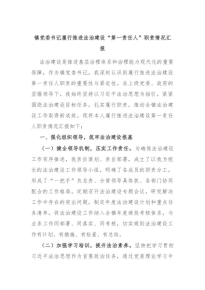 【七哥公文】2025年:镇党委书记履行推进法治建设“第一责任人”职责情况汇报+更多免费公文+VX:QiGeGongWen2024
