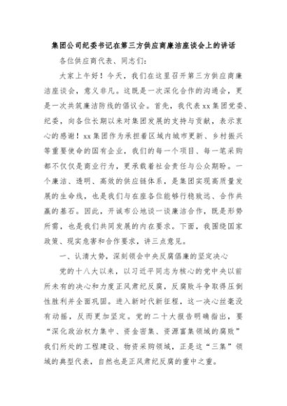 / 【七哥公文】2025年:集团公司纪委书记在第三方供应商廉洁座谈会上的讲话+更多免费公文+VX:QiGeGongWen2024
