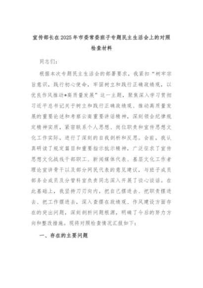 【七哥公文】2025年:宣传部长在2025年市委常委班子专题民主生活会上的对照检查材料+更多免费公文+VX:QiGeGongWen2024