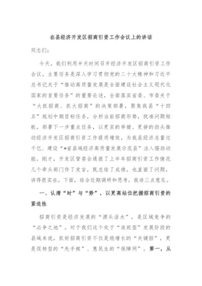 / 【七哥公文】2025年:在县经济开发区招商引资工作会议上的讲话+更多免费公文+VX:QiGeGongWen2024