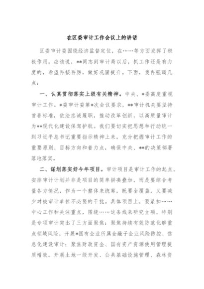 / 【七哥公文】2025年:在区委审计工作会议上的讲话+更多免费公文+VX:QiGeGongWen2024