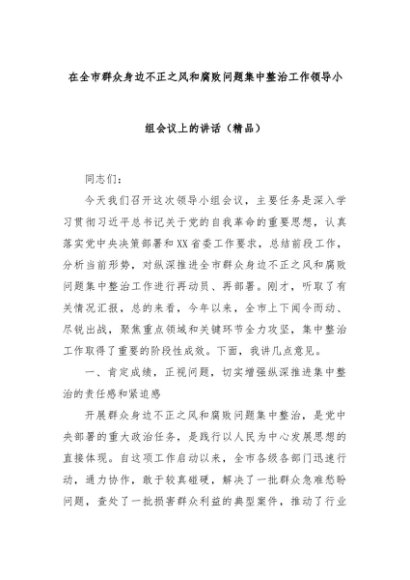 【七哥公文】2025年:在全市群众身边不正之风和腐败问题集中整治工作领导小组会议上的讲话(精品)+更多免费公文+VX:QiGeGongWen2024