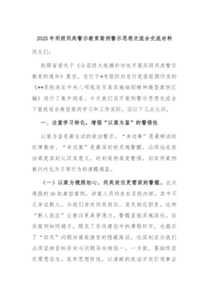 【七哥公文】2025年:2025年同级同类警示教育案例警示思想交流会交流材料+更多免费公文+VX:QiGeGongWen2024