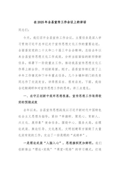 / 【七哥公文】2025年:在2025年全县宣传工作会议上的讲话+更多免费公文+VX:QiGeGongWen2024