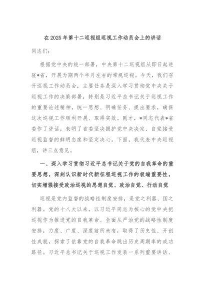 / 【七哥公文】2025年:在2025年第十二巡视组巡视工作动员会上的讲话+更多免费公文+VX:QiGeGongWen2024