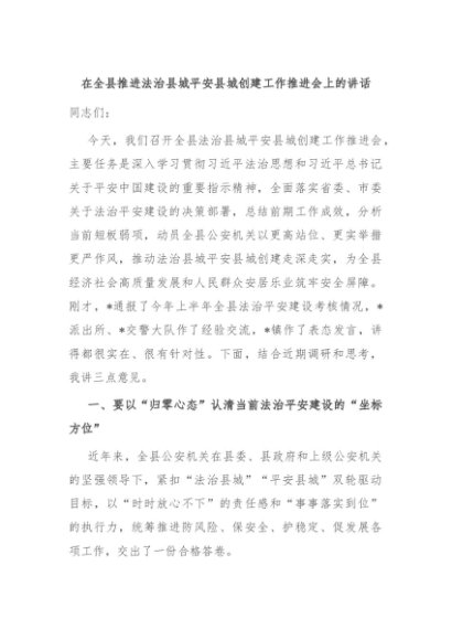 / 【七哥公文】2025年:在全县推进法治县城平安县城创建工作推进会上的讲话+更多免费公文+VX:QiGeGongWen2024