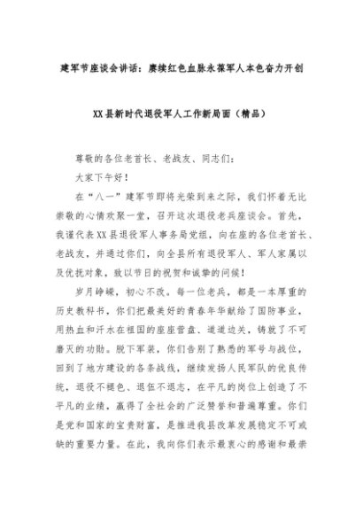 【七哥公文】2025年:建军节座谈会讲话:赓续红色血脉永葆军人本色奋力开创XX县新时代退役军人工作新局面(精品)+更多免费公文+VX:QiGeGongWen2024