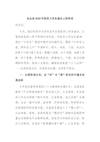 / 【七哥公文】2025年:在全县2025年经济工作务虚会上的讲话+更多免费公文+VX:QiGeGongWen2024