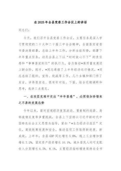 / 【七哥公文】2025年:在2025年全县党委工作会议上的讲话+更多免费公文+VX:QiGeGongWen2024