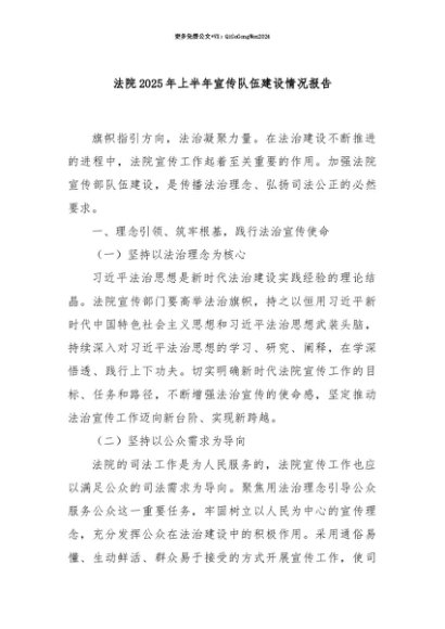 【七哥公文】2025年:【七哥公文】法院2025年上半年宣传队伍建设情况报告+更多免费公文+VX:QiGeGongWen2024+更多免费公文+VX:QiGeGongWen2024