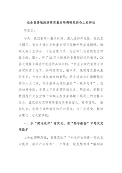 / 【七哥公文】2025年:在全县县域经济高质量发展调研座谈会上的讲话+更多免费公文+VX:QiGeGongWen2024