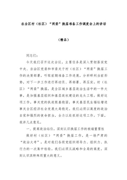 【七哥公文】2025年:在全区村(社区)“两委”换届准备工作调度会上的讲话(精品)+更多免费公文+VX:QiGeGongWen2024