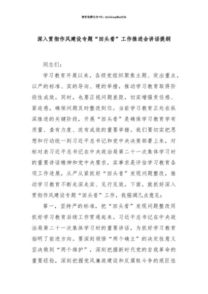 【七哥公文】2025年:【七哥公文】深入贯彻作风建设专题“回头看”工作推进会讲话提纲+更多免费公文+VX:QiGeGongWen2024+更多免费公文+VX:QiGeGongWen2024