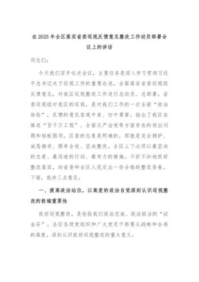 【七哥公文】2025年:在2025年全区落实省委巡视反馈意见整改工作动员部署会议上的讲话+更多免费公文+VX:QiGeGongWen2024