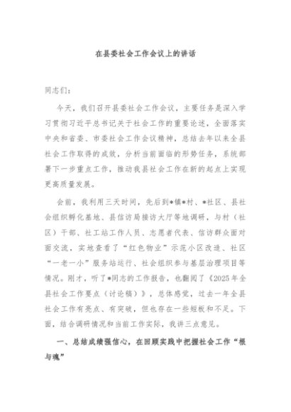 / 【七哥公文】2025年:在县委社会工作会议上的讲话+更多免费公文+VX:QiGeGongWen2024