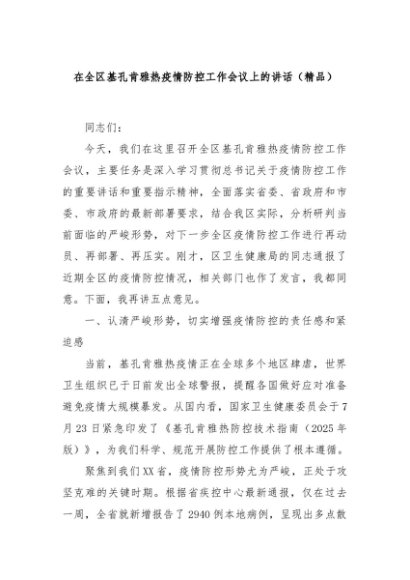 / 【七哥公文】2025年:在全区基孔肯雅热疫情防控工作会议上的讲话(精品)+更多免费公文+VX:QiGeGongWen2024