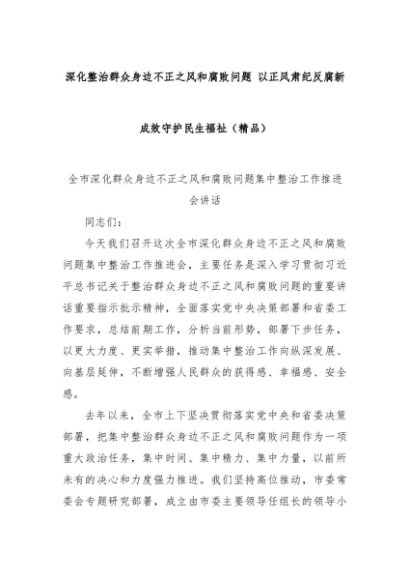 【七哥公文】2025年:深化整治群众身边不正之风和腐败问题 以正风肃纪反腐新成效守护民生福祉(精品)+更多免费公文+VX:QiGeGongWen2024