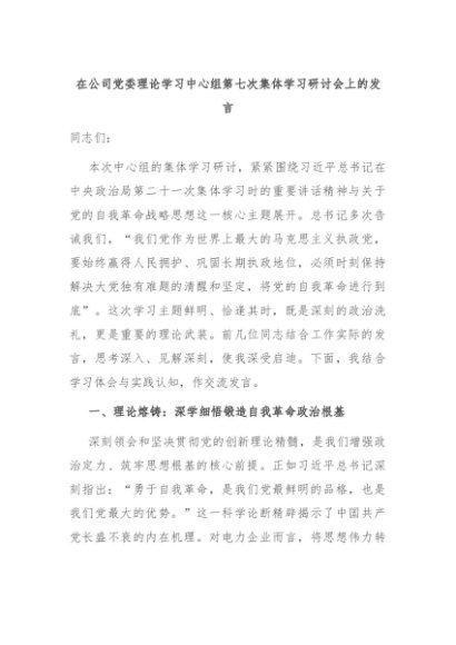 【七哥公文】2025年:在公司党委理论学习中心组第七次集体学习研讨会上的发言+更多免费公文+VX:QiGeGongWen2024