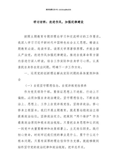 【七哥公文】2025年:【七哥公文】研讨材料:改进作风,加强纪律建设+更多免费公文+VX:QiGeGongWen2024+更多免费公文+VX:QiGeGongWen2024