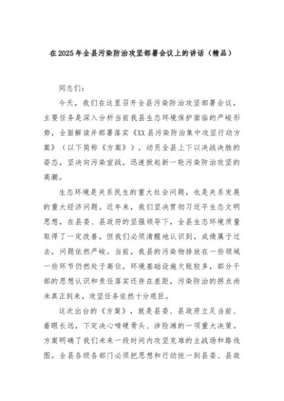 【七哥公文】2025年:在2025年全县污染防治攻坚部署会议上的讲话(精品)+更多免费公文+VX:QiGeGongWen2024