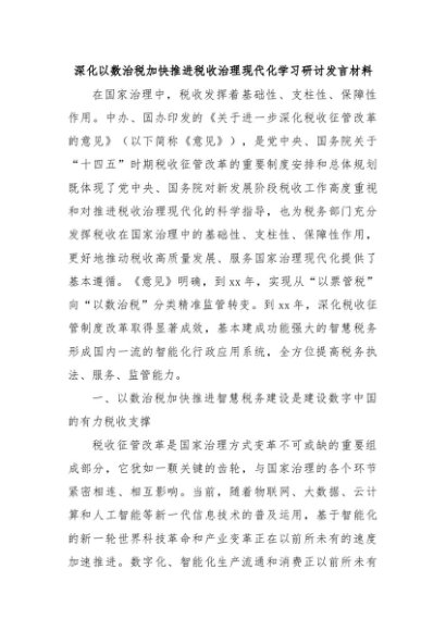 【七哥公文】2025年:深化以数治税加快推进税收治理现代化学习研讨发言材料+更多免费公文+VX:QiGeGongWen2024