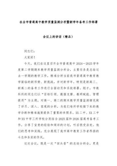 【七哥公文】2025年:在全市普通高中教学质量监测分析暨新学年备考工作部署会议上的讲话(精品)+更多免费公文+VX:QiGeGongWen2024