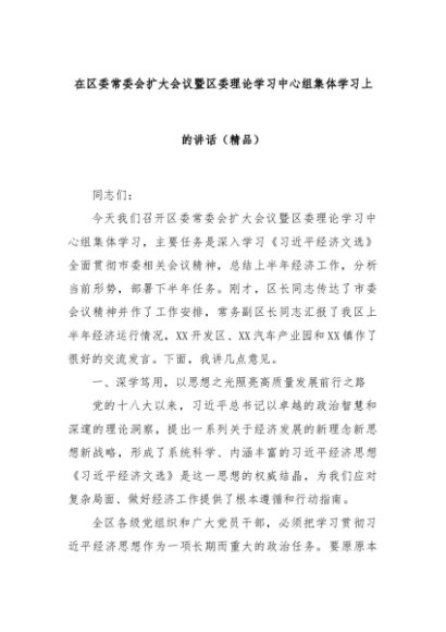 【七哥公文】2025年:在区委常委会扩大会议暨区委理论学习中心组集体学习上的讲话(精品)+更多免费公文+VX:QiGeGongWen2024
