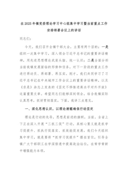 【七哥公文】2025年:在2025年镇党委理论学习中心组集中学习暨当前重点工作安排部署会议上的讲话+更多免费公文+VX:QiGeGongWen2024