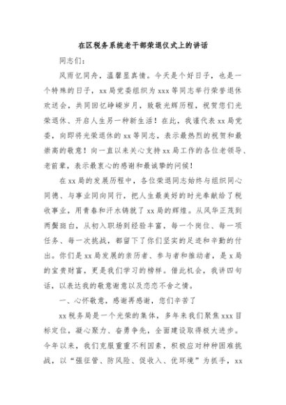 / 【七哥公文】2025年:在区税务系统老干部荣退仪式上的讲话+更多免费公文+VX:QiGeGongWen2024