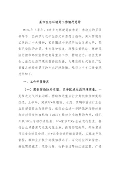 / 【七哥公文】2025年:某市生态环境局工作情况总结+更多免费公文+VX:QiGeGongWen2024