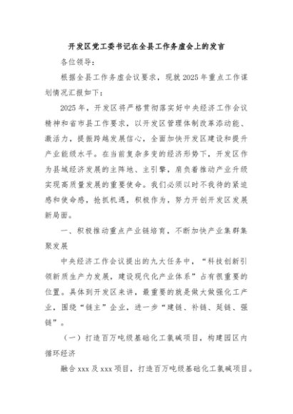 / 【七哥公文】2025年:开发区党工委书记在全县工作务虚会上的发言+更多免费公文+VX:QiGeGongWen2024
