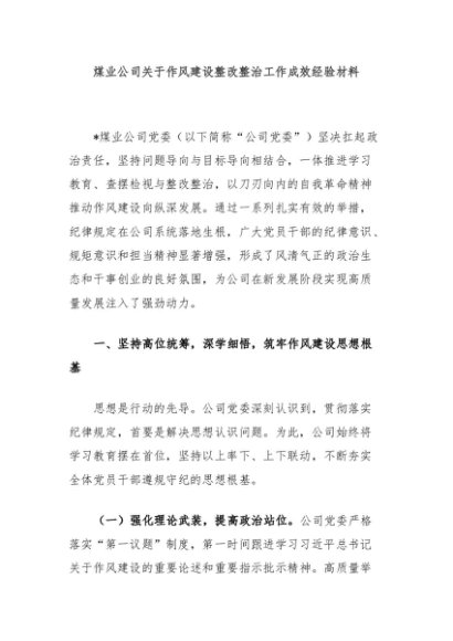 / 【七哥公文】2025年:煤业公司关于作风建设整改整治工作成效经验材料+更多免费公文+VX:QiGeGongWen2024