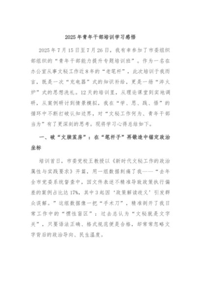 / 【七哥公文】2025年:2025年青年干部培训学习感悟+更多免费公文+VX:QiGeGongWen2024