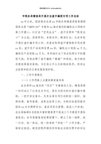 【七哥公文】2025年:【七哥公文】市税务局稽查局开展打击虚开骗税专项工作总结+更多免费公文+VX:QiGeGongWen2024+更多免费公文+VX:QiGeGongWen2024