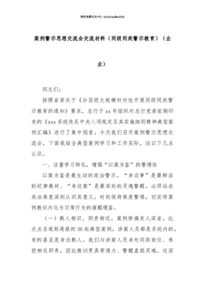 【七哥公文】2025年:【七哥公文】案例警示思想交流会交流材料(同级同类警示教育)(企业)+更多免费公文+VX:QiGeGongWen2024+更多免费公文+VX:QiGeGongWen2024
