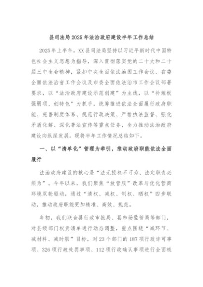 / 【七哥公文】2025年:县司法局2025年法治政府建设半年工作总结+更多免费公文+VX:QiGeGongWen2024