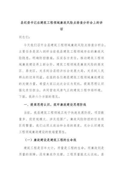 【七哥公文】2025年:县纪委书记在建筑工程领域廉政风险点排查分析会上的讲话+更多免费公文+VX:QiGeGongWen2024