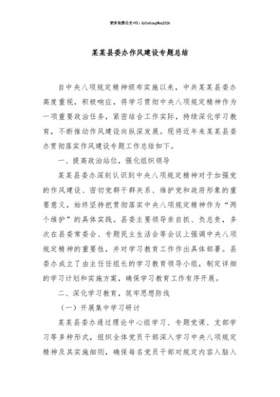 【七哥公文】2025年:【七哥公文】某某县委办作风建设专题总结+更多免费公文+VX:QiGeGongWen2024+更多免费公文+VX:QiGeGongWen2024