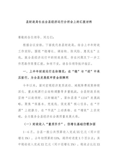 / 【七哥公文】2025年:县财政局长在全县经济运行分析会上的汇报材料+更多免费公文+VX:QiGeGongWen2024