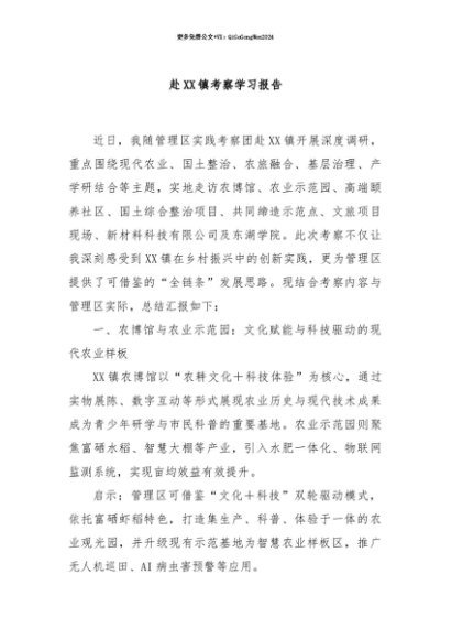【七哥公文】2025年:【七哥公文】赴XX镇考察学习报告+更多免费公文+VX:QiGeGongWen2024+更多免费公文+VX:QiGeGongWen2024