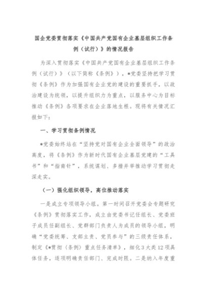 【七哥公文】2025年:国企党委贯彻落实《中国共产党国有企业基层组织工作条例(试行)》的情况报告+更多免费公文+VX:QiGeGongWen2024