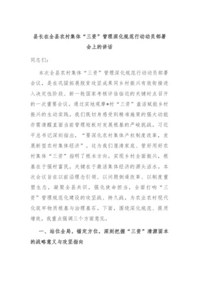 【七哥公文】2025年:县长在全县农村集体“三资”管理深化规范行动动员部署会上的讲话+更多免费公文+VX:QiGeGongWen2024