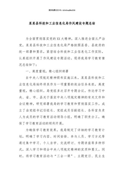 【七哥公文】2025年:【七哥公文】某某县科技和工业信息化局作风建设专题总结+更多免费公文+VX:QiGeGongWen2024+更多免费公文+VX:QiGeGongWen2024