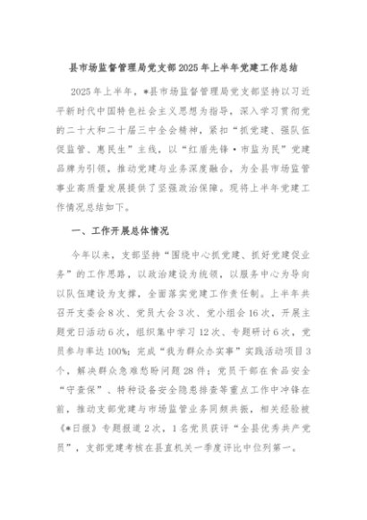 【七哥公文】2025年:县市场监督管理局党支部2025年上半年党建工作总结+更多免费公文+VX:QiGeGongWen2024